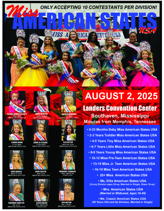 Although the Miss American States Pageant is not one of our pageants we produce, we do want to help support it. This pageant is directed by Melissa King who is on our Miss Magnolia State Pageant Staff.